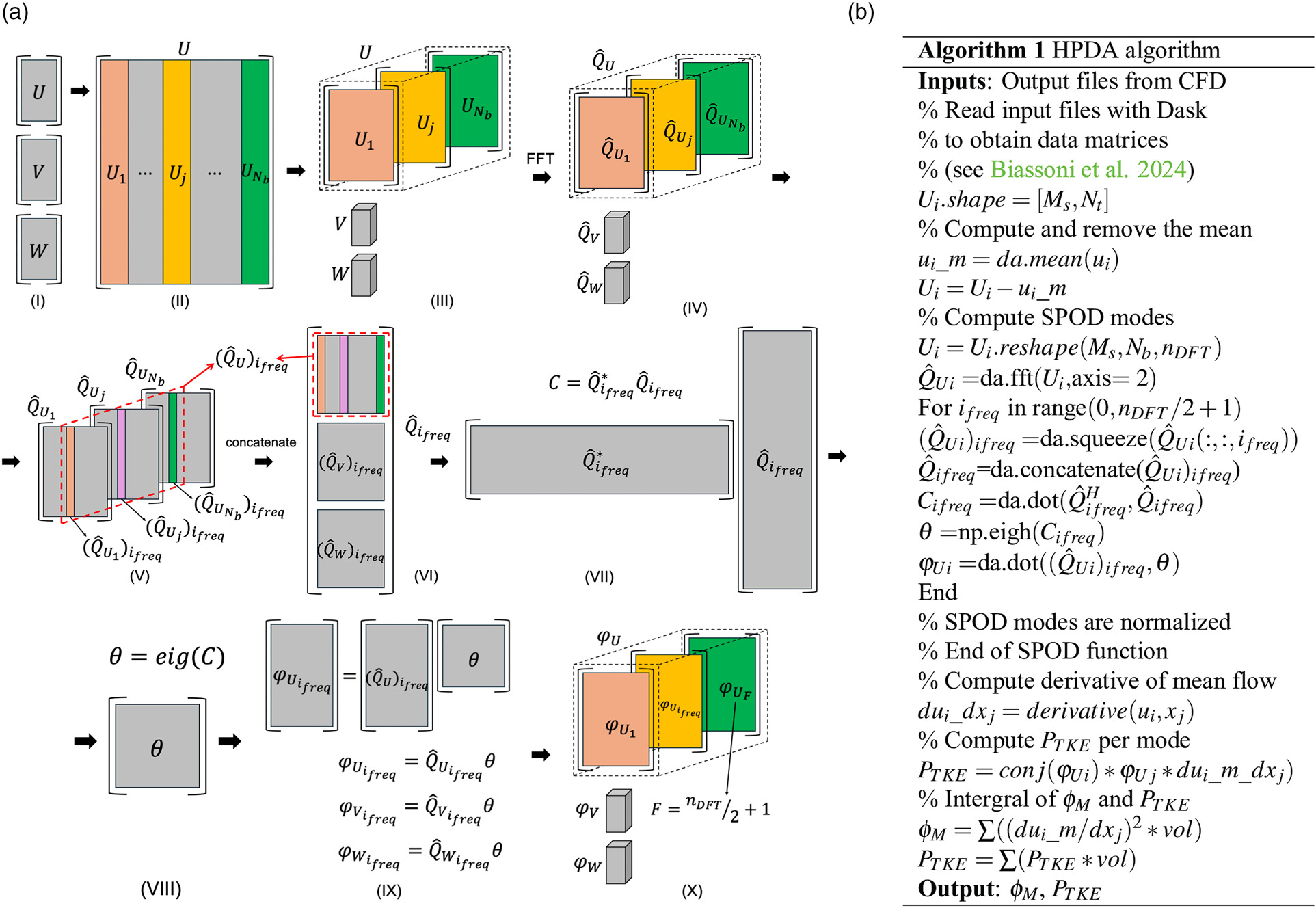 Spectral-POD procedure: SPOD computational sequence (a); complete HPDA algorithm (b).