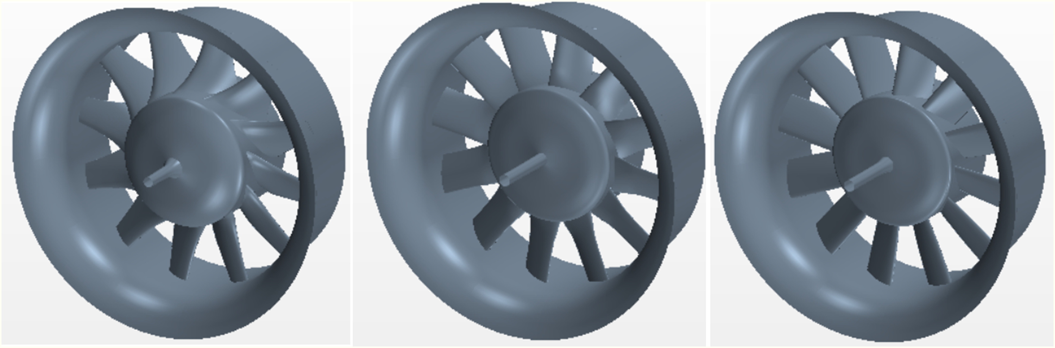 Much the same wall surface area – to equalise the wall friction effects – owing to the selection of the same blade counts (z = 12) and aspect ratio (AR ≈ 1.7).