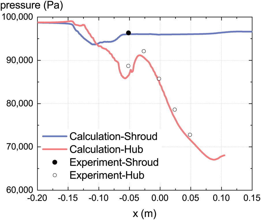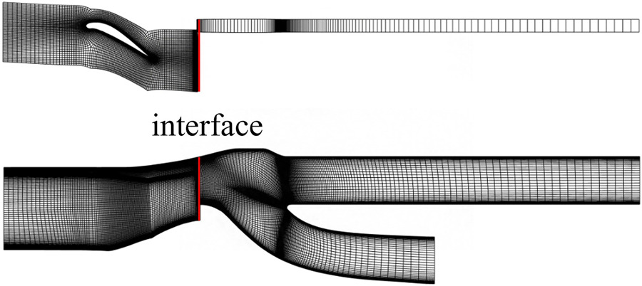 Concerning the boundary conditions, total pressure, total temperature, and flow angles are specified at the inflow boundary, whereas static pressure, considering radial equilibrium, is specified at the outflow boundary. Then, the 1D non-reflecting boundary condition method is applied. Non-slip and adiabatic conditions are employed for the solid walls. A mixing plane model based on flux conservation (Du and Ning, 2016) is used at interfaces between upstream mesh blocks and downstream mesh blocks with different pitches.