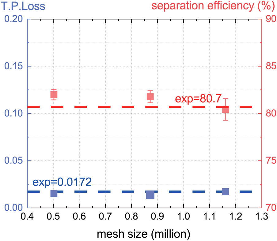 The above research mainly focuses on how separation efficiency varied according to the design parameters, but few studies (Hamed et al., 1995; Xu and Chen, 2021) focus on the accuracy of the numerical simulation itself. The present investigation aims to systematically identify the influential factors in numerical simulations that would affect the calculated particle separation efficiency, thus providing a guide to improve the simulation accuracy.