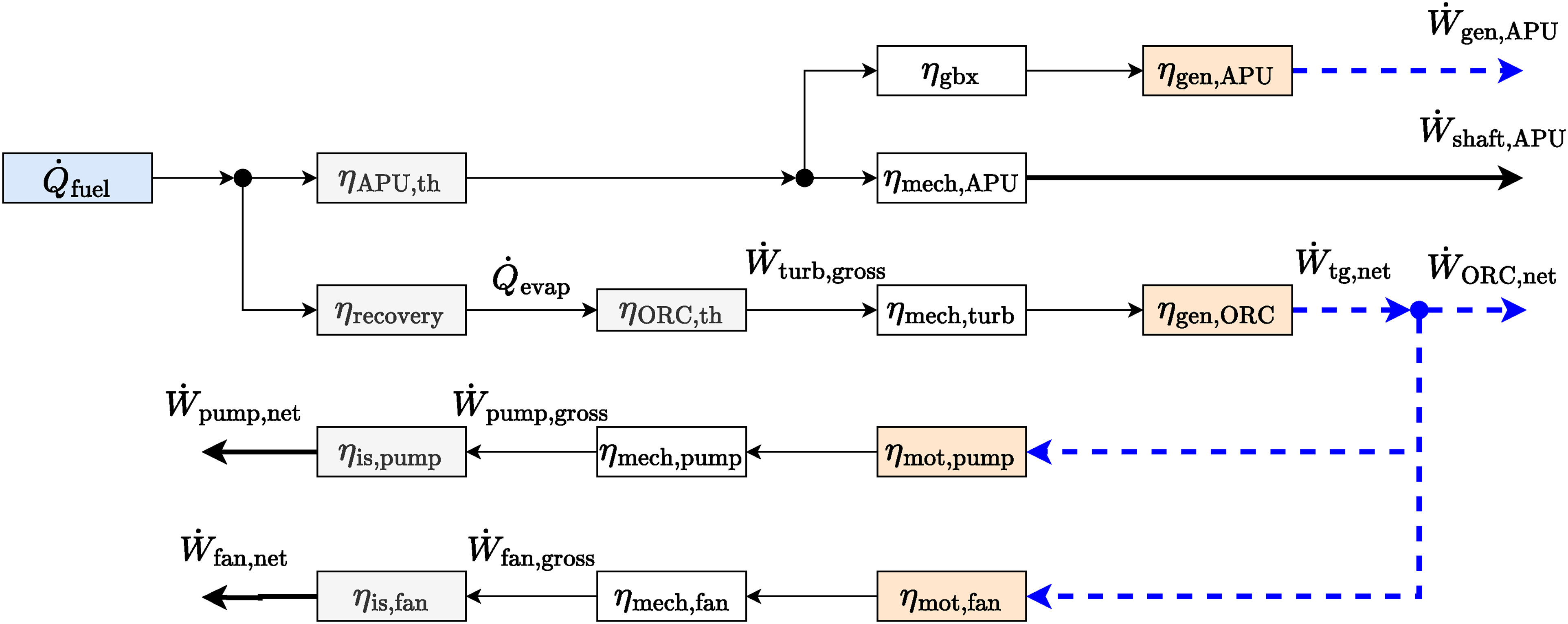 W˙CCAPU,net=W˙APU,net+W˙ORC,netwithW˙APU,net=W˙shaft,APU+W˙gen,APU.