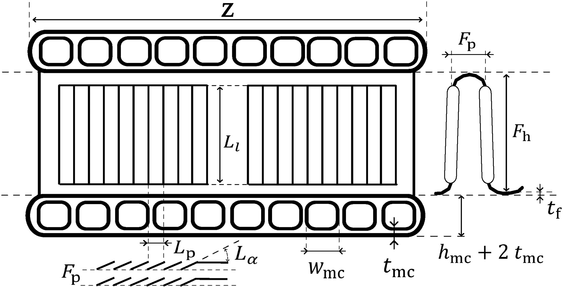 xlEvaporator non-dimensional longitudinal pitch (−)1.25/3.0