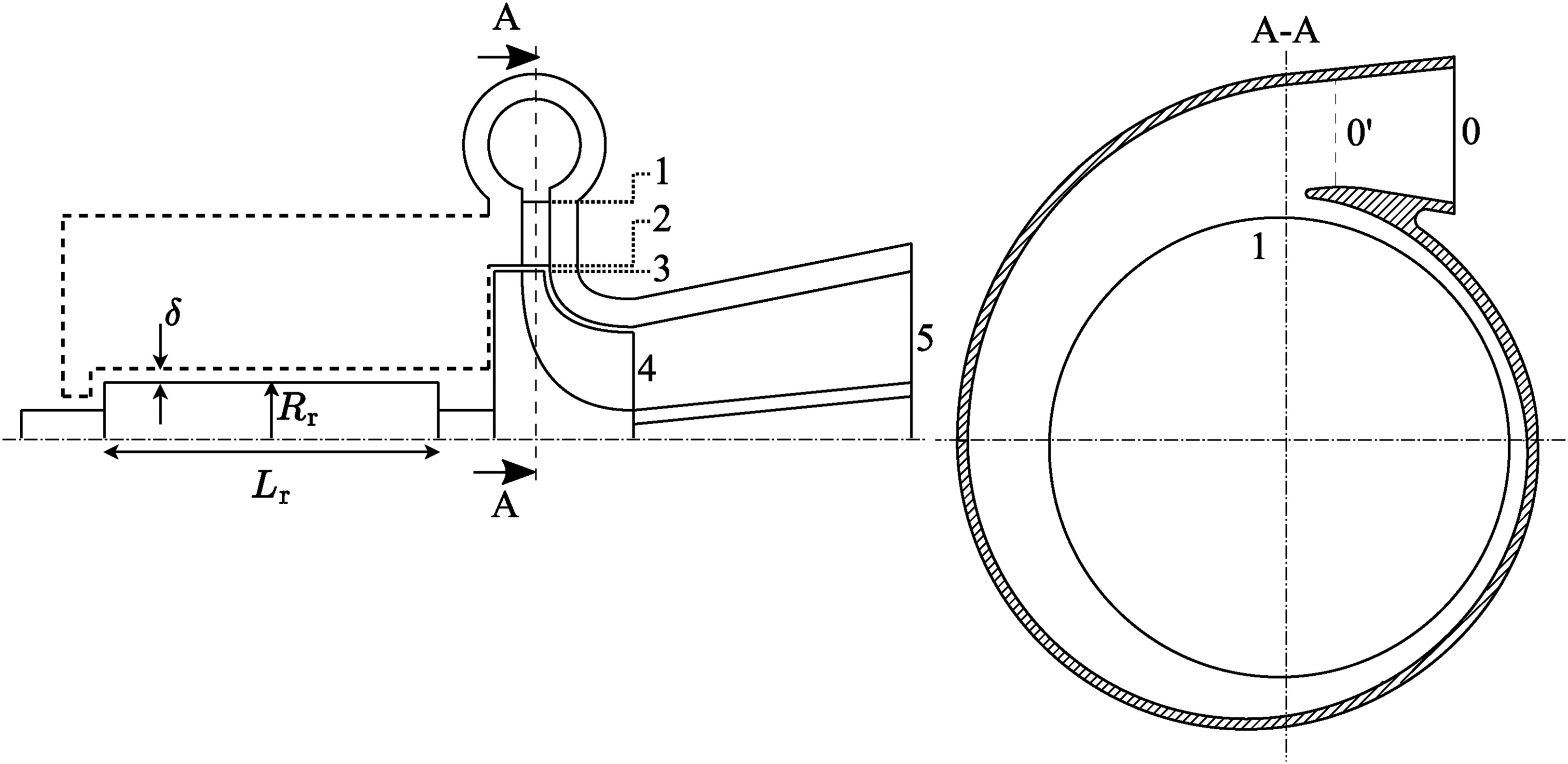 Volute centerline radius at inlet section (−)