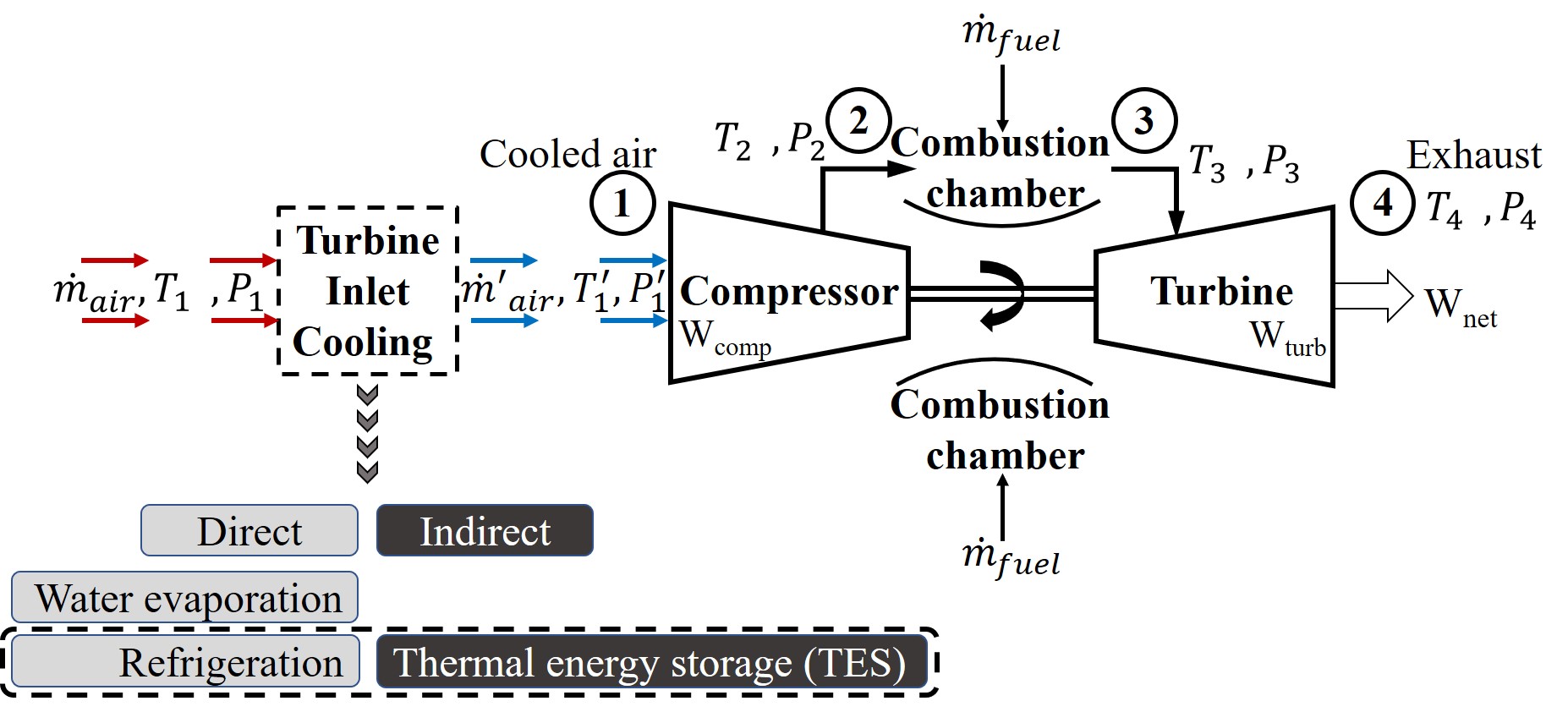 Adding a TES in the GT inlet cooling system provides decoupling from the system, allowing to store energy during off-peak hours and make use of it whenever is required from the system. This decoupling provides extra degrees of freedom when managing power generation or consumption. For this reason, optimization algorithms are employed to find maximum/minimum values of the variables of the customized objective function. In this manner, constraints can be also considered.